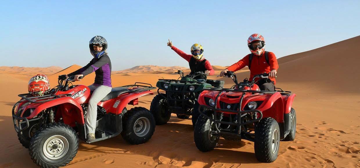 Our routes include bivouacs in the golden sand dunes of the desert, nights and delicious meals in comfortable Berber tents, providing quads, 4×4 cars, amusing camel treks.